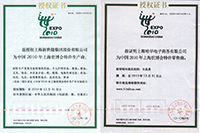 中國2010年上海世博會榮譽(yù)紀(jì)念證書