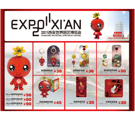 2011年西安世界園藝博覽會以“長安花”作為會徽和吉祥物,表達出博覽會喜迎八方客的熱情。在低碳綠色發(fā)展成為潮流的今日,2011西安世園會打出了‘綠色引領(lǐng)時尚’的理念,西安城的大街小巷隨處可見這樣的宣傳語。延續(xù)來源于世博會特許產(chǎn)品設(shè)計的經(jīng)驗積累和成功案例,基于自然、時尚的生活態(tài)度,新世傲設(shè)計的西安世園會的特許商品圍繞“綠色、環(huán)保”的理念,以會徽和吉祥物為主要設(shè)計元素,設(shè)計出了實用、紀念雙重特性的產(chǎn)品,涵蓋了玩具、飾品等受歡迎的品類。